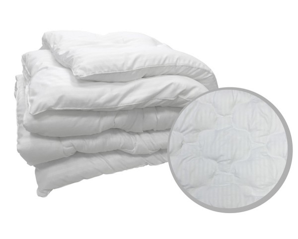 Одеяло ширина 140см, длина 205см, наполнитель - 1,2кг тонкое полое силиконизированное микроволокно "Искусственный Лебяжий пух" 100% ПЭ, верх - микрофибра 100% п/э, по краю чехла кант. Упаковано в сумку-чемодан ПВХ+спандбонд. ГОСТ Р 55857-2013